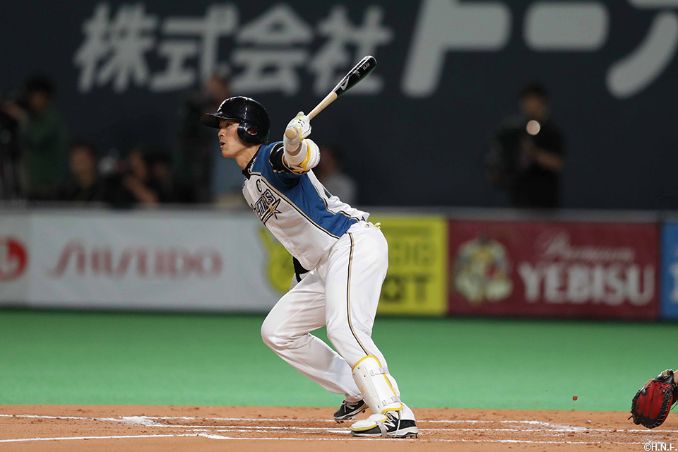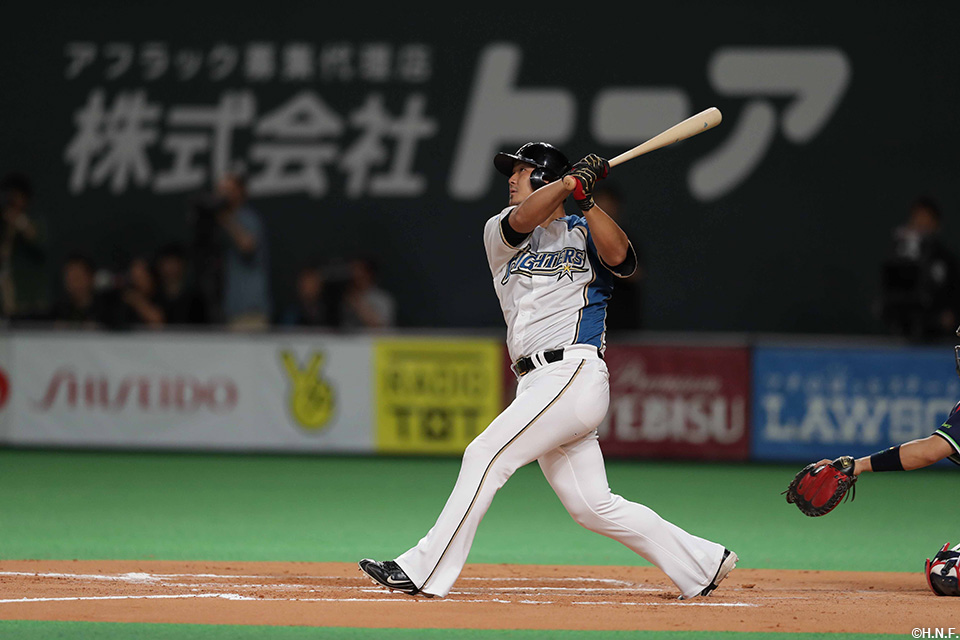投手 増井 2番 坂口 左安 レフトへのヒットを放つ 1塁 |