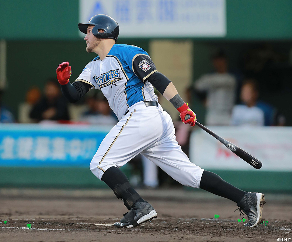 6番 レアード 右中二 フルカウントからライトへのタイムリーツーベースで日本ハム先制! 日1-0広 2塁 ![]() 1