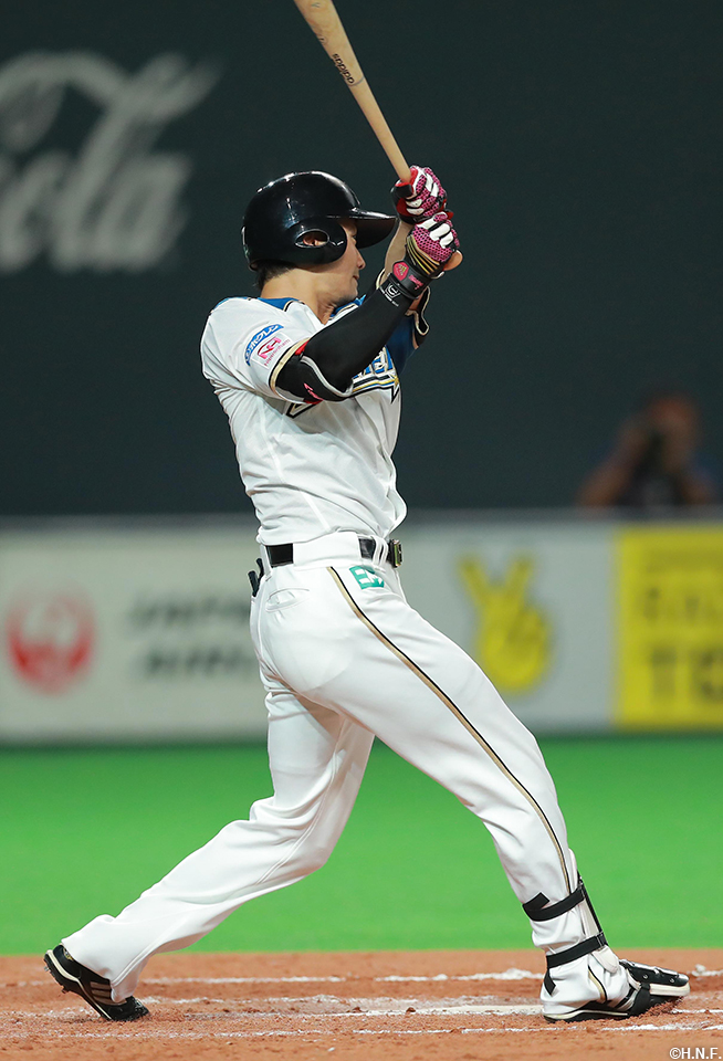 6番 レアード 左安 レフトへのヒットを放つ 1塁 |