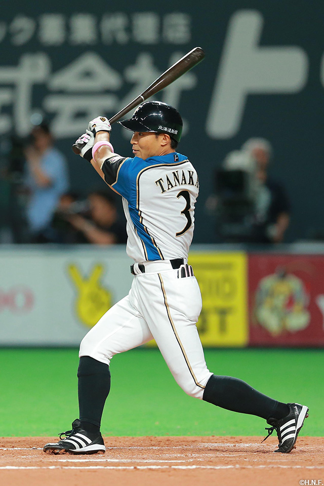2塁走者田中賢介は塁を飛び出しておりダブルプレー! 3アウトチェンジ |