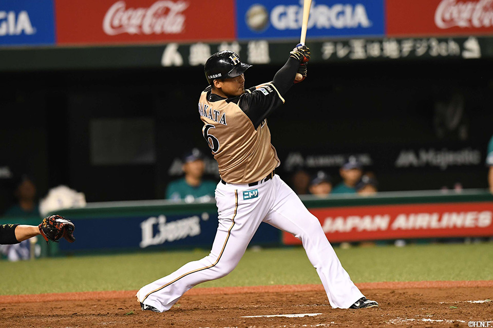 同点ホームランを放つ中田選手