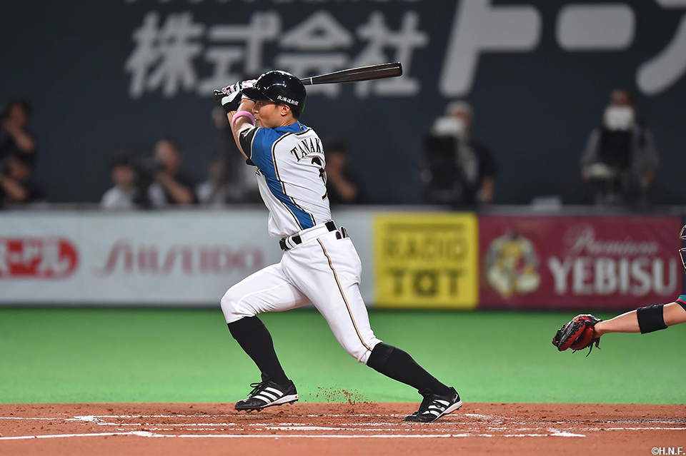 投手 牧田 4番 中田 三ゴ 外角のカーブを打つもサードゴロ 1アウト  |