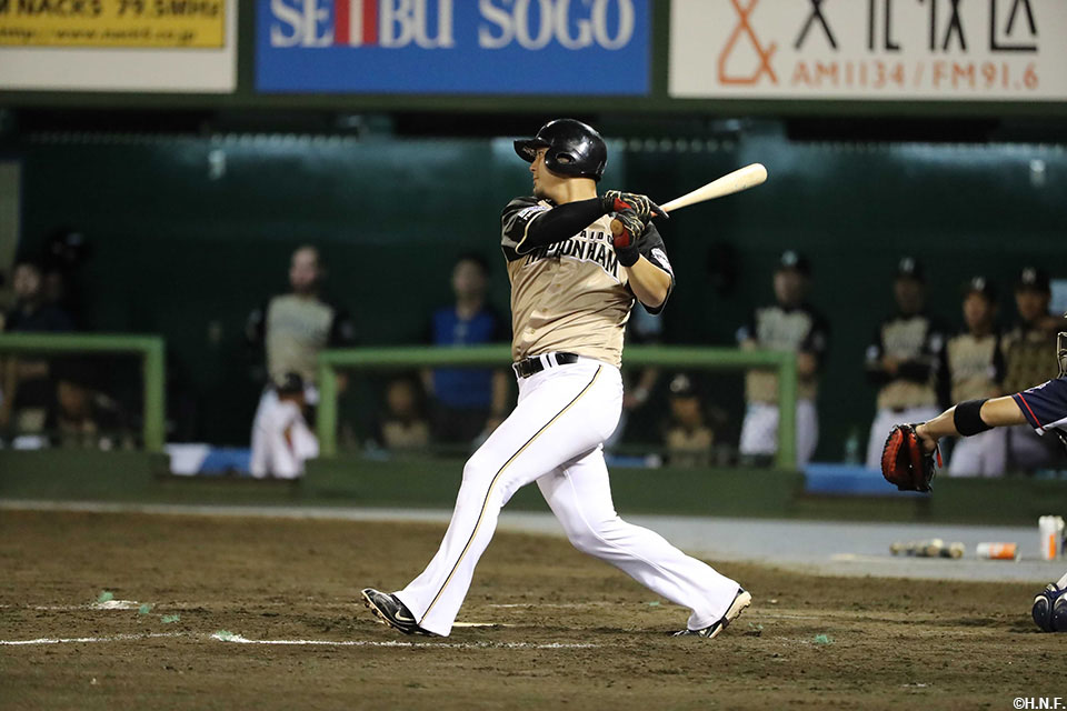 2番 秋山 左安 ランナー2塁 高めのストレートをレフトへタイムリーヒット! 1塁 西5-0日 ![]() 5