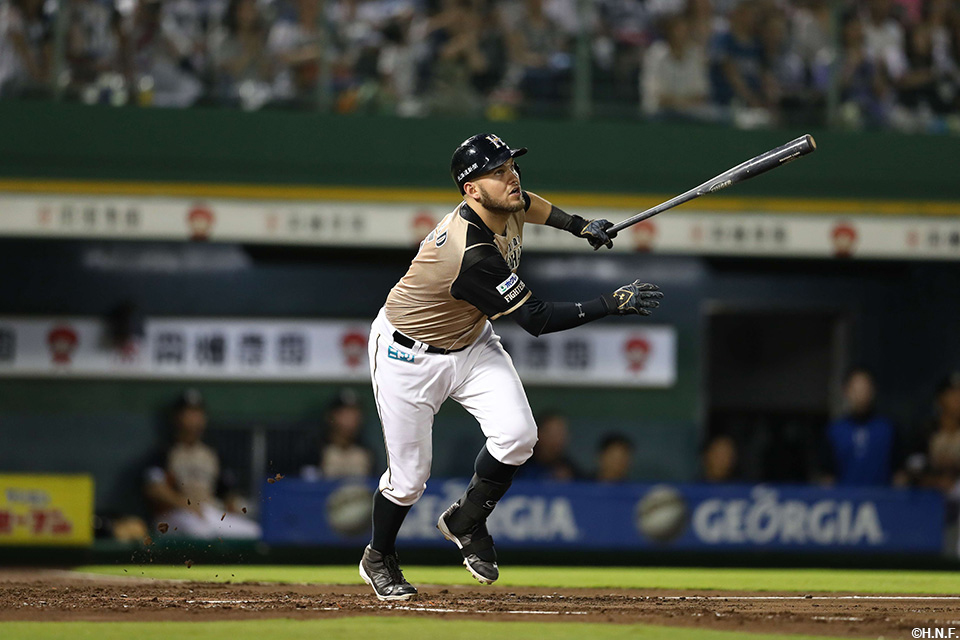 7番 レアード 左本 ランナー1塁 カウント0-0からレフトスタンドへ2ランホームラン! オ4-12日 ![]() 5
