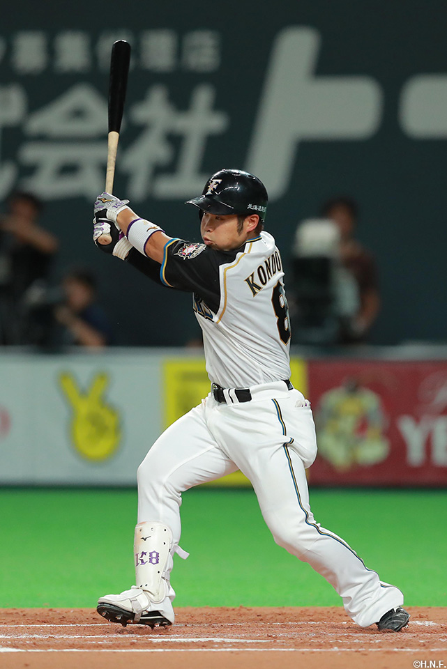 2番 近藤 左中二 満塁 外角のストレートをセンターへタイムリーツーベース! 2塁 日7-2ロ ![]() 7