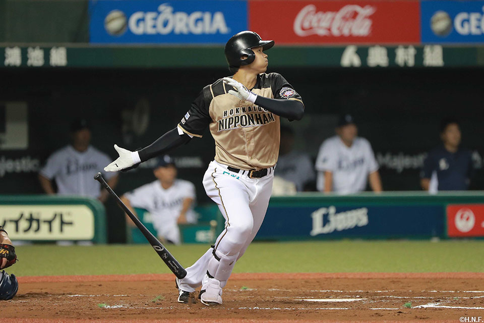 2番 外崎 左本 ランナー1塁 カウント1-0からレフトスタンドへ先制2ランホームラン 西2-0日 ![]() 2