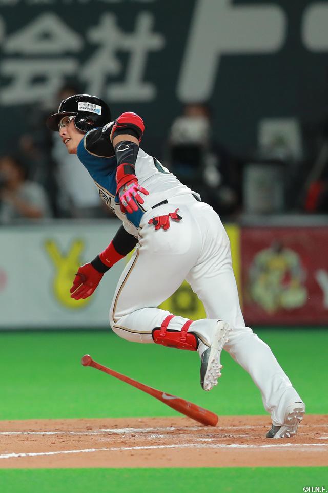 投手 バンデンハーク 5番 近藤 左中二 153キロの高めのストレートをレフトへ打ってツーベース 2塁 |