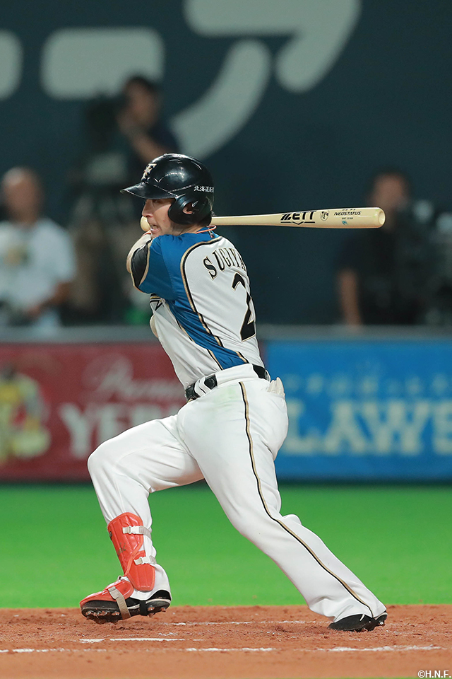 投手 東浜 4番 中田 左安 低めのストレートをレフトへ打ってヒット 1塁 |