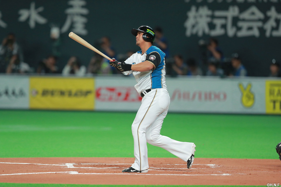 4番 中田 左本 カウント0-0からレフトスタンドへ同点ホームラン! 日1-1広 ![]() 1