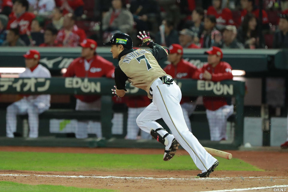 増井(投)のワイルドピッチにより進塁する 3塁 広1-1日 |