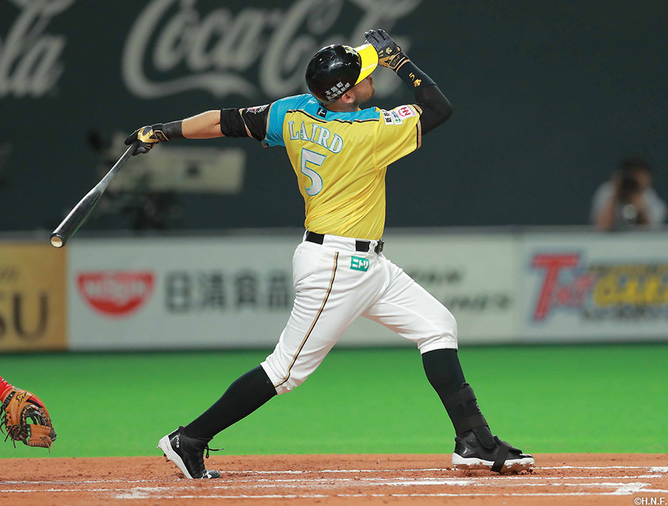 5番 レアード 左本 ランナー1,3塁 カウント1-1から左中間へ先制3ランホームラン! 日3-0ロ ![]() 3