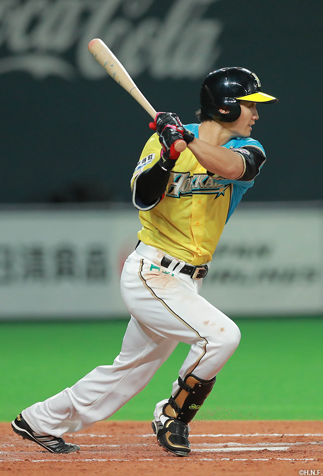 ランナー3塁 内角のカットボールをレフトへタイムリーヒット 1塁 日2-6ソ