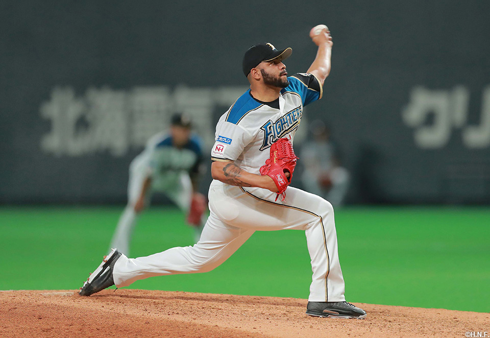 投手 三上 4番 中田 捕邪飛 ファウルフライを高城(捕)が捕球してバッターアウト 3アウトチェンジ |