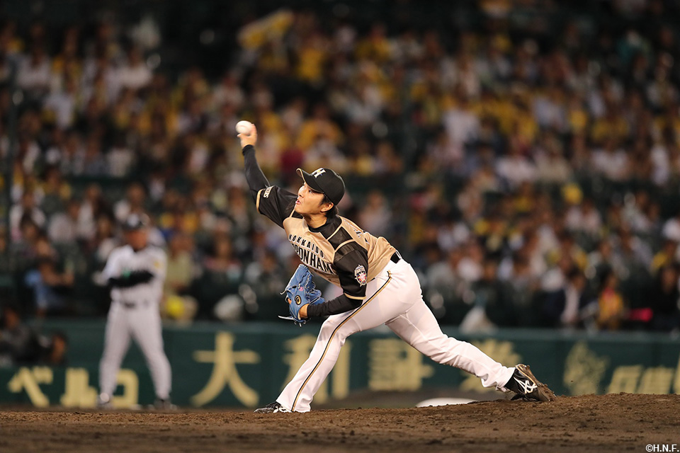 投手 高梨 5番 原口 空三振 外角低めのフォークを空振り三振 1アウト |