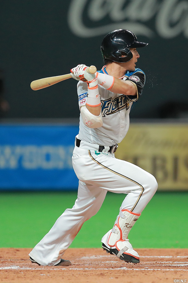 5番 田中賢介 右安 内角低めのカーブをライトへ打ってヒット 1塁 |