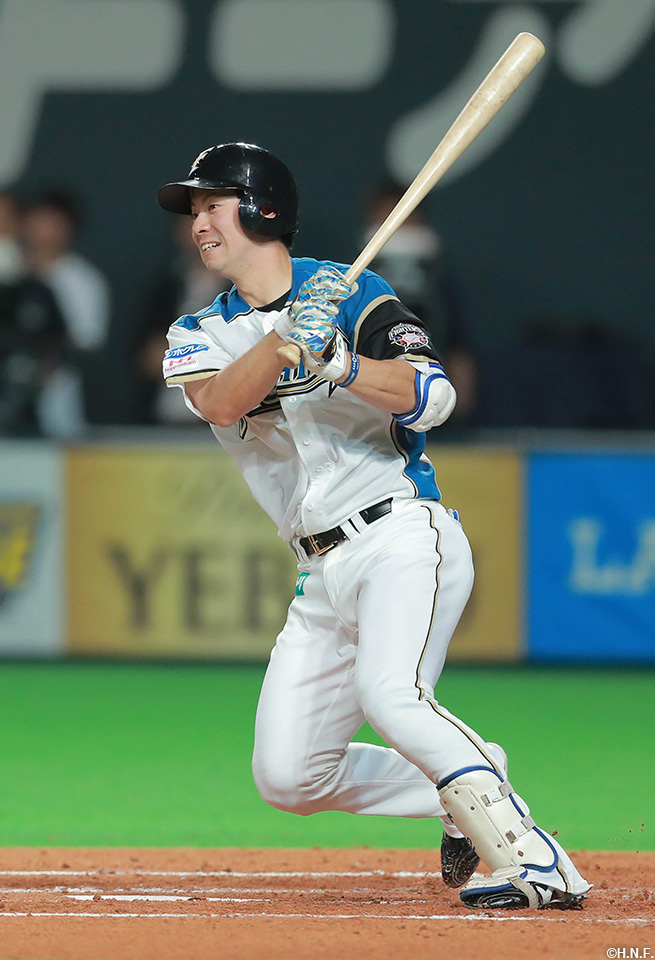 6番 長野 左安 外角のストレートをレフトへ打ってヒット 1塁 |