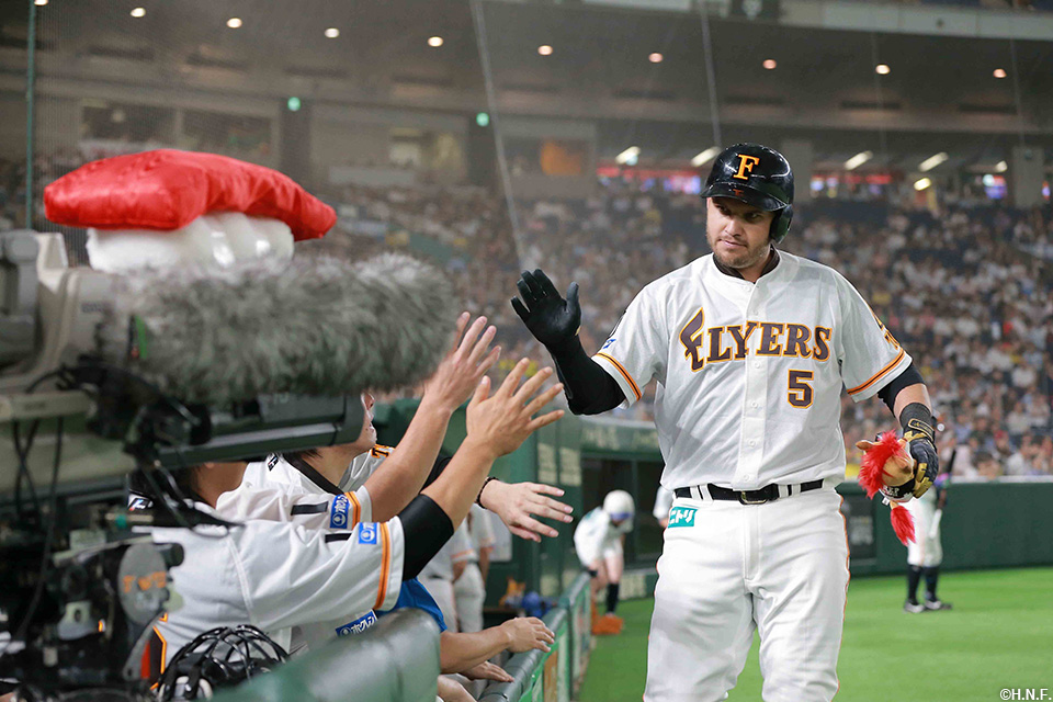 5番 田中賢介 右安 内角高めのストレートをライトへ打ってヒット 1塁 |