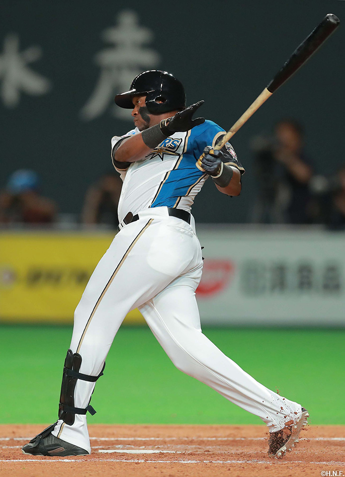 4番 レアード 空三振 内角低めのシュートを空振り三振 1アウト |