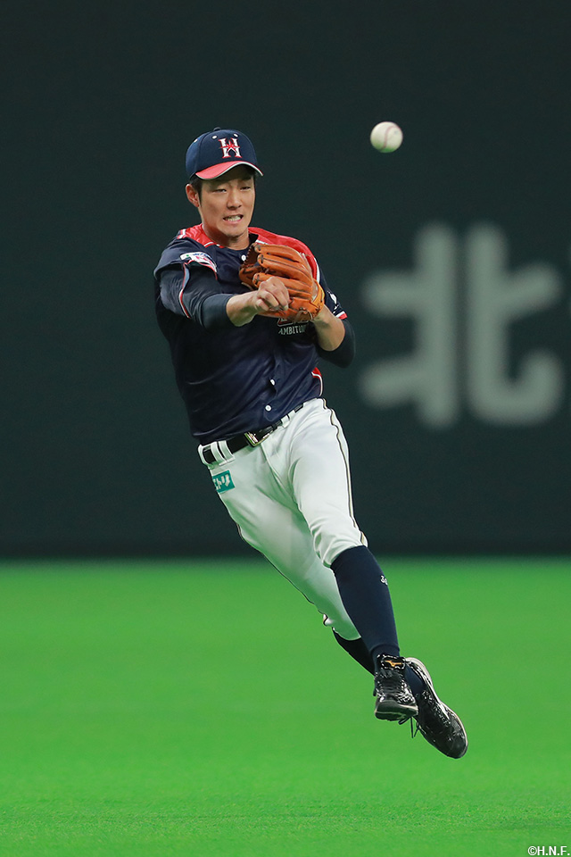 投手 上沢 4番 ウィーラー 左2 外角低めのフォークをレフトへ打ってツーベース 2塁 |