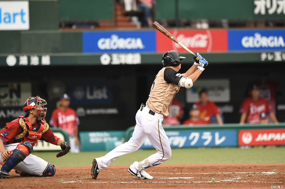 投手 ウルフ 3番 中田 左2 低めのツーシームをレフトへ打ってツーベース 2塁 |