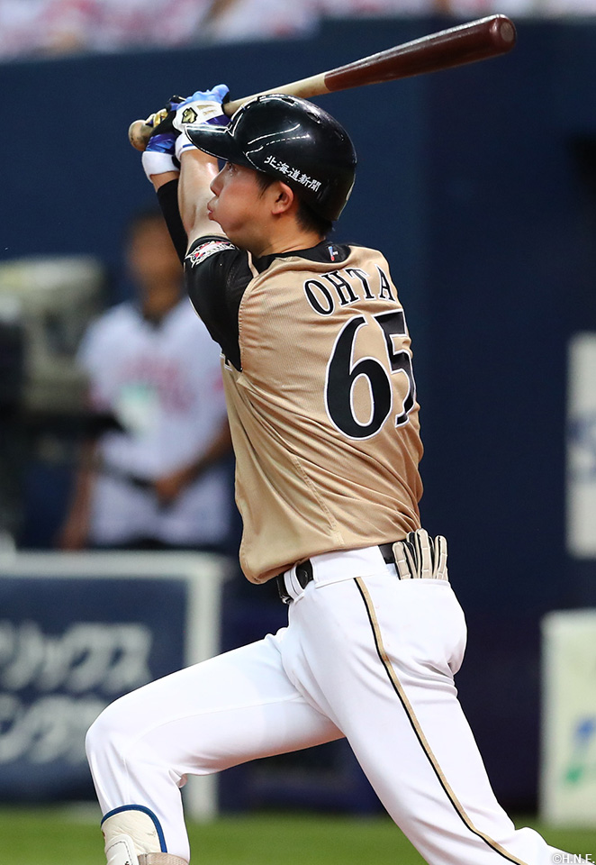 勝ち越し打を放つ太田選手