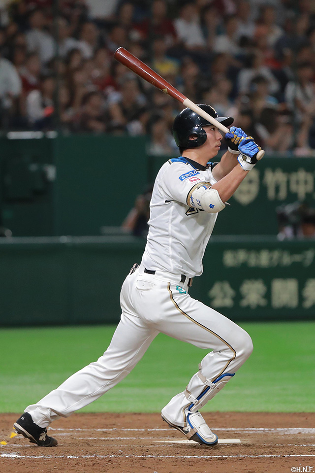 投手 安樂 4番 中田 死球 デッドボールを受ける 1塁 |