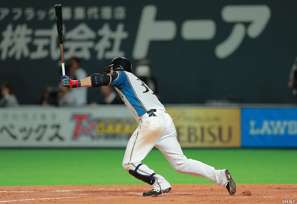 6番 横尾 左安 ランナー1,2塁 内角のシュートをレフトへ同点タイムリーヒット! 1,2塁 日2-2ロ ![]() 2