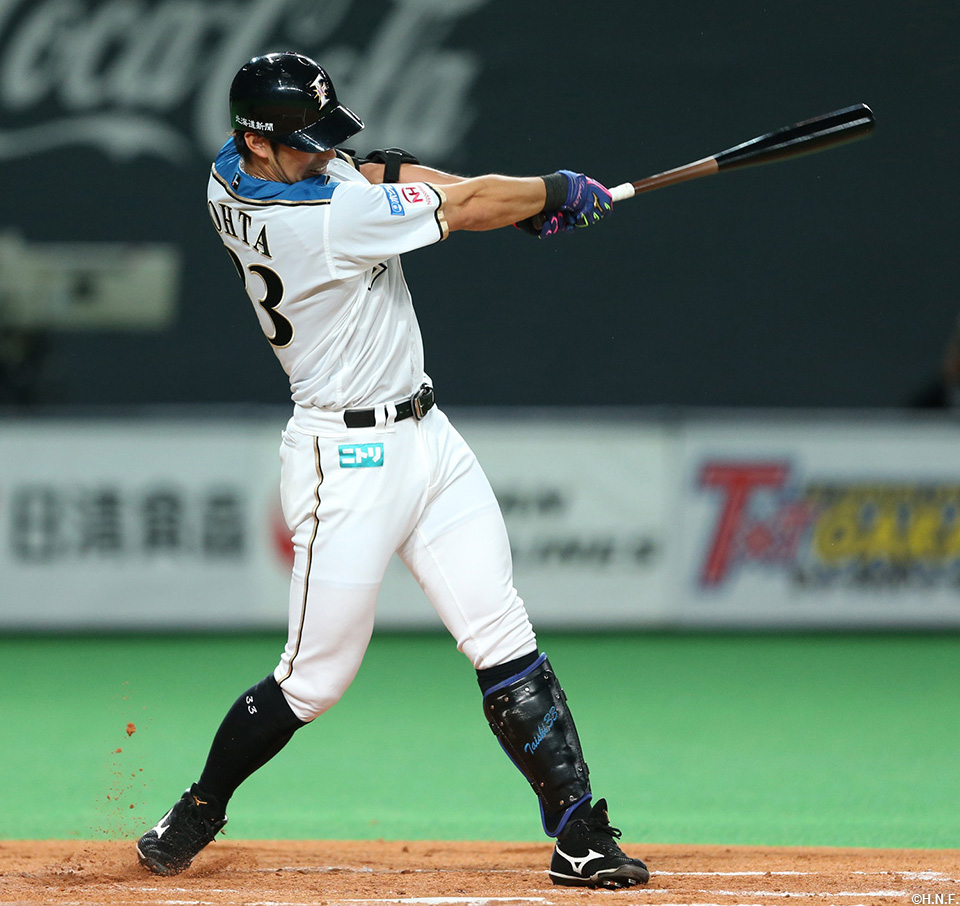 7番 大田 左2 外角のスライダーをレフトへ打ってツーベース 2塁 |