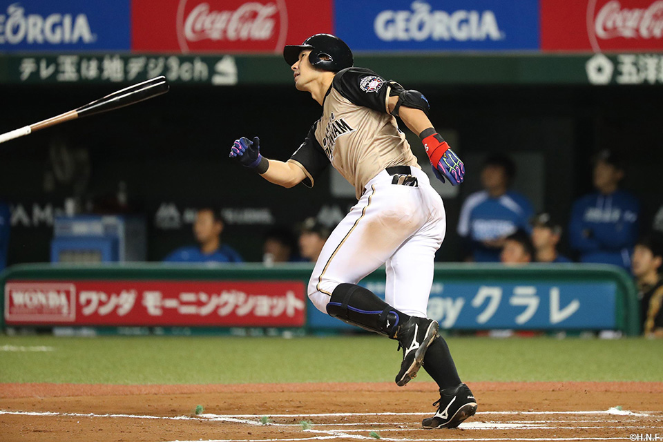9番 金子侑 左安 ランナー2塁 外角のスライダーをレフトへタイムリーヒット 1塁 西5-6日 ![]() 5
