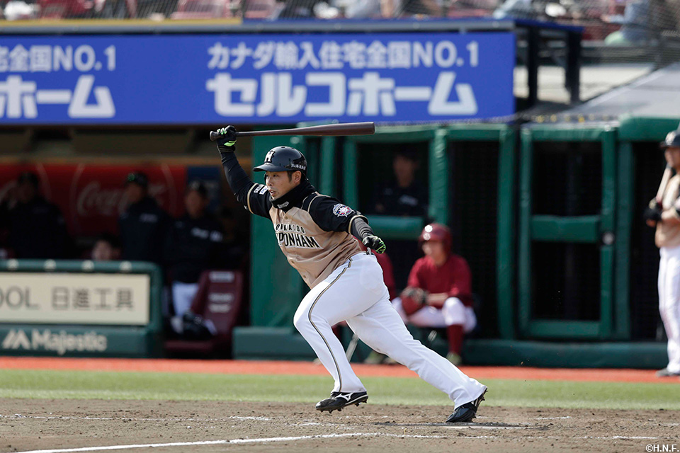 4番 中田 左安 ランナー1,3塁 内角低めのチェンジアップをレフトへ勝ち越しタイムリーヒット! 1,2塁 楽1-2日 ![]() 1