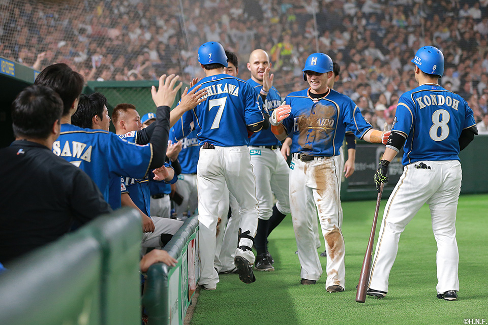 投手 十亀 7番 清宮 中失 秋山(中)の落球により出塁する 3塁 |