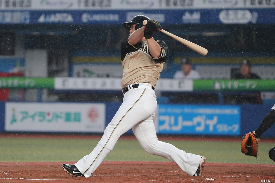 4番 中田 左2 ランナー1,2塁 外角のシュートをレフトへ先制タイムリーツーベース! ロ0-1日 |