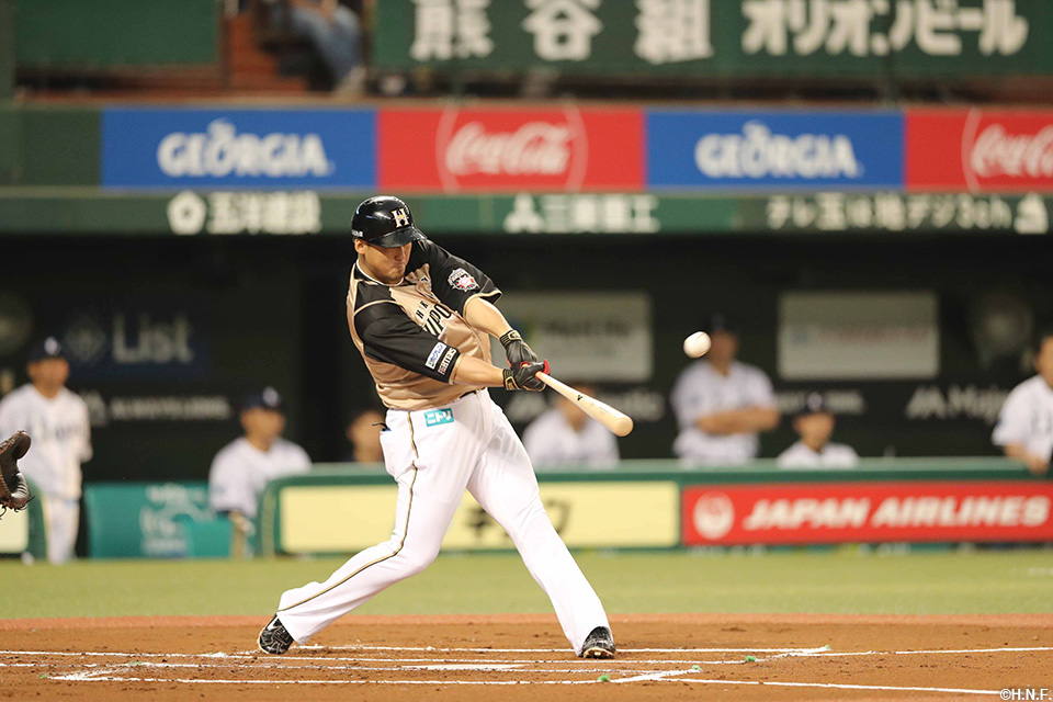 先制となる2ランを放つ中田選手