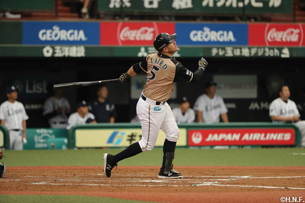 4番 レアード 左本 ランナー2塁 カウント0-0から左中間へ同点2ランホームラン! 西8-8日 ![]() 8