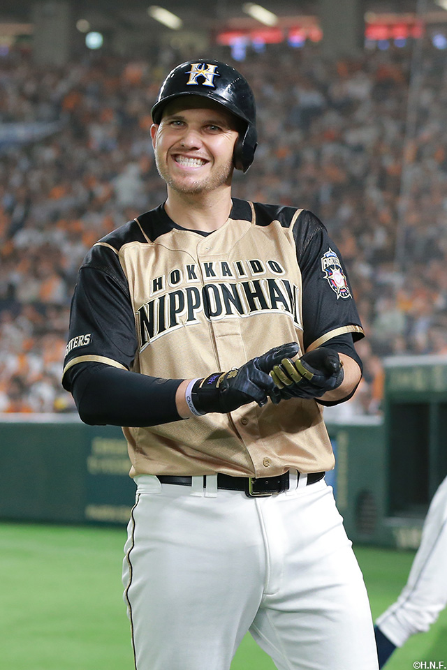 投手 吉川光 3番 レアード 左本 カウント1-0からレフトスタンドへホームラン! 巨8-2日 ![]() 8