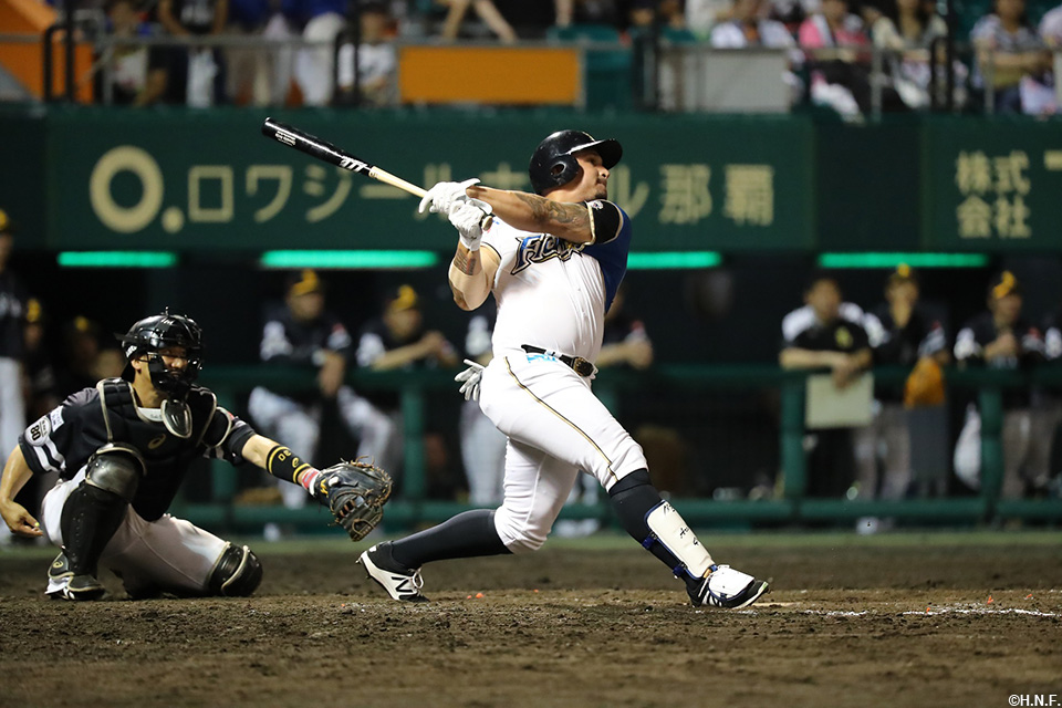 6番 レアード 空三振 高めのカットボールを空振り三振 2アウト |