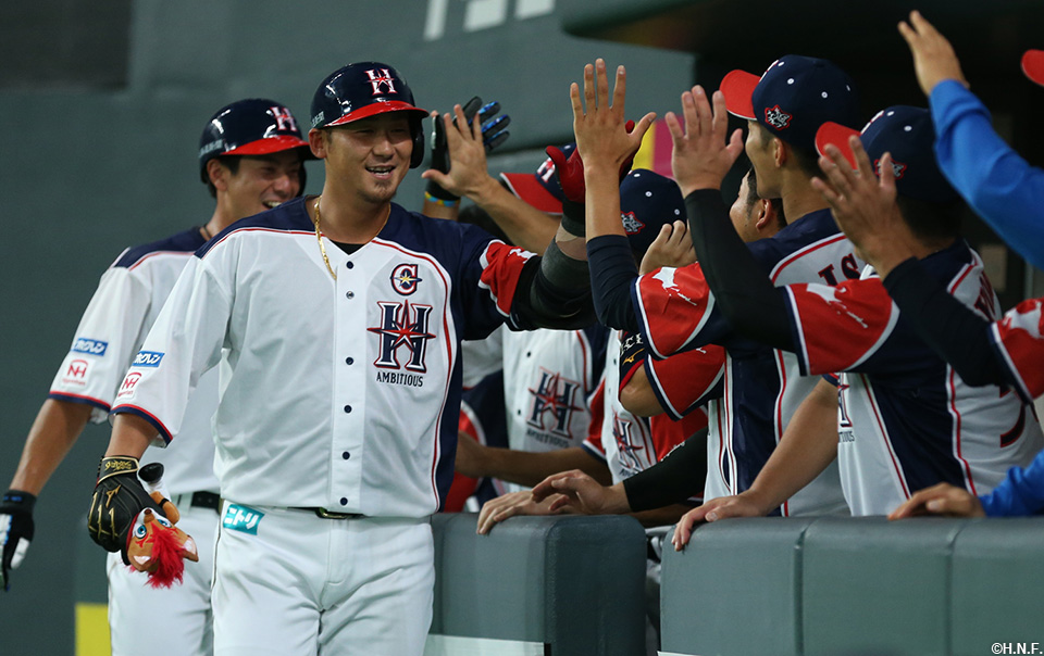 4番 中田 左本 ランナー3塁 カウント0-1からレフトスタンドへ2ランホームラン! 日3-0ソ ![]() 3
