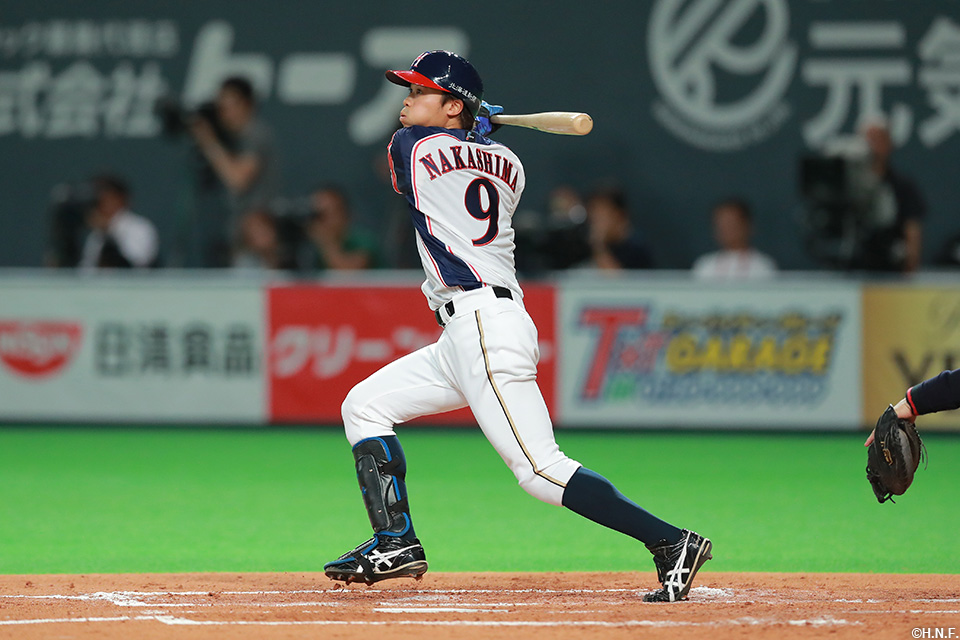 9番 中島卓也 左安 高めのストレートをレフトへ打ってヒット 1塁  |