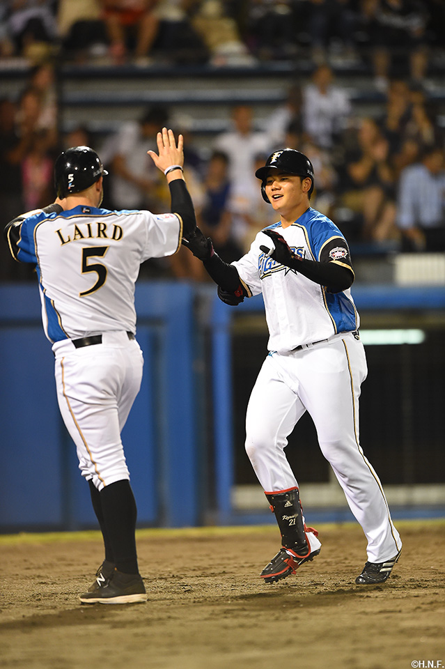 5番 レアード 中2 外角のストレートをセンターへ打ってツーベース 2塁 |