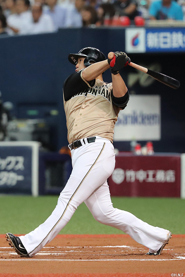5番 中島 左2 ランナー1,2塁 内角低めのツーシームをレフトへタイムリーツーベース 2,3塁 オ2-1日 ![]() 2