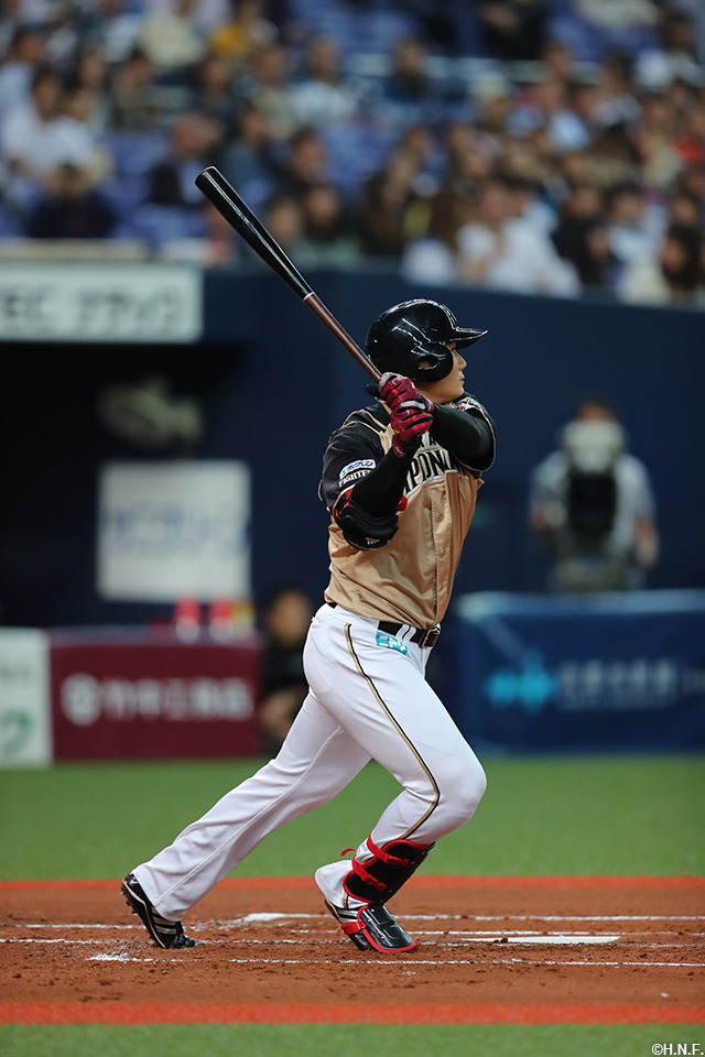 4番 吉田正 左安 ランナー1塁 外角のストレートをレフトへ打ってヒット 1,2塁 |