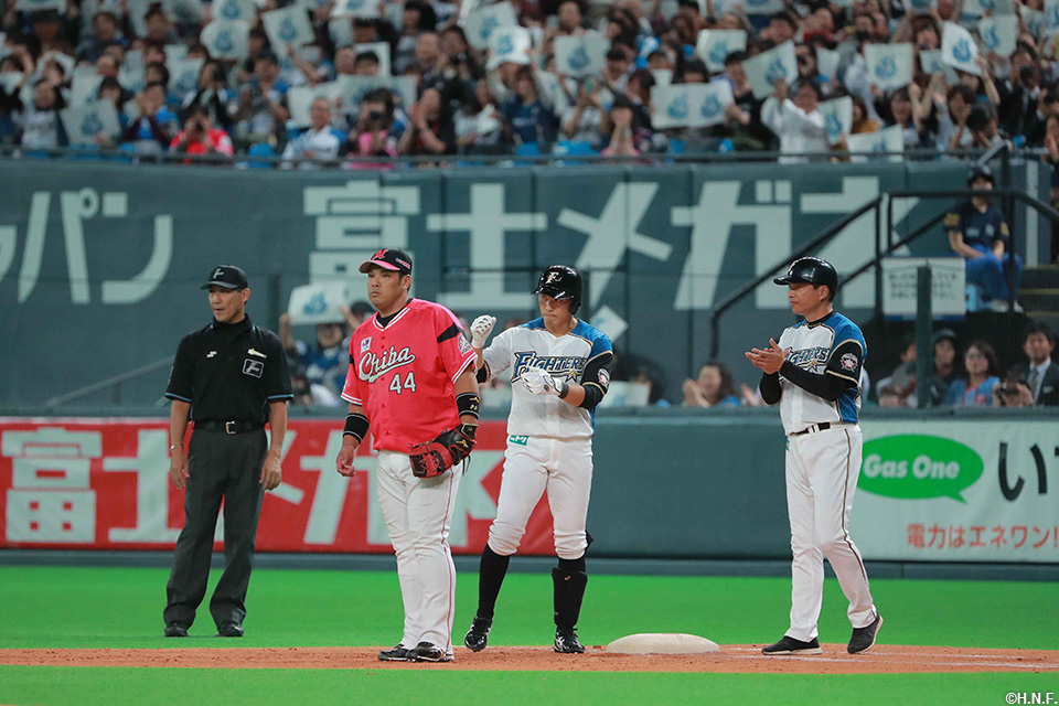 8番 中島卓也 左安 低めのカットボールをレフトへ打ってヒット 1塁  |