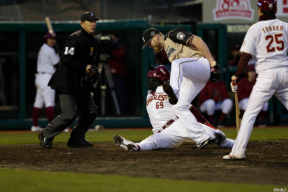 7番 谷内 三ゴロ 満塁 内角高めのスライダーを打つもサードゴロ 2,3塁 楽3-1日 2アウト ![]() 3