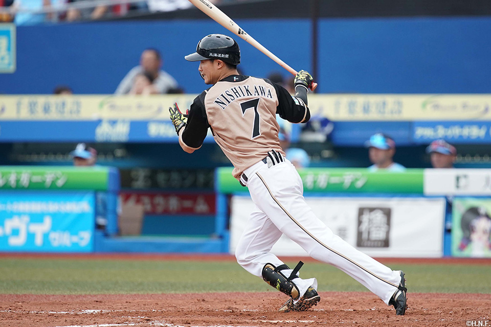 1番 西川 左2 外角のシュートをレフトへ打ってツーベース 2塁 |