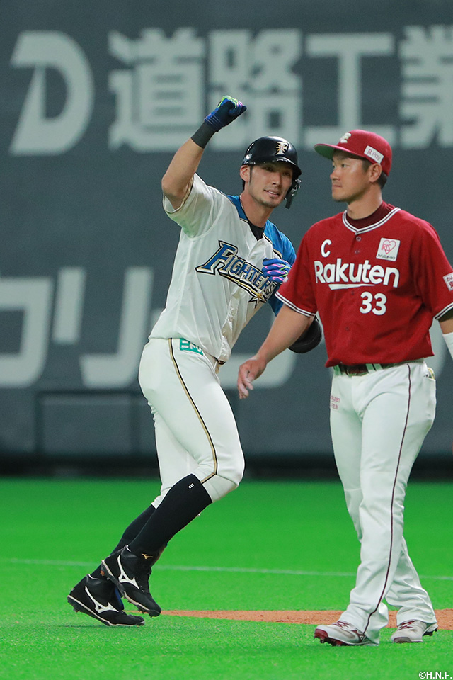 3番 大田 中安 ランナー3塁 外角低めのストレートをセンターへ先制タイムリーヒット! 1塁 日1-0楽 ![]() 1