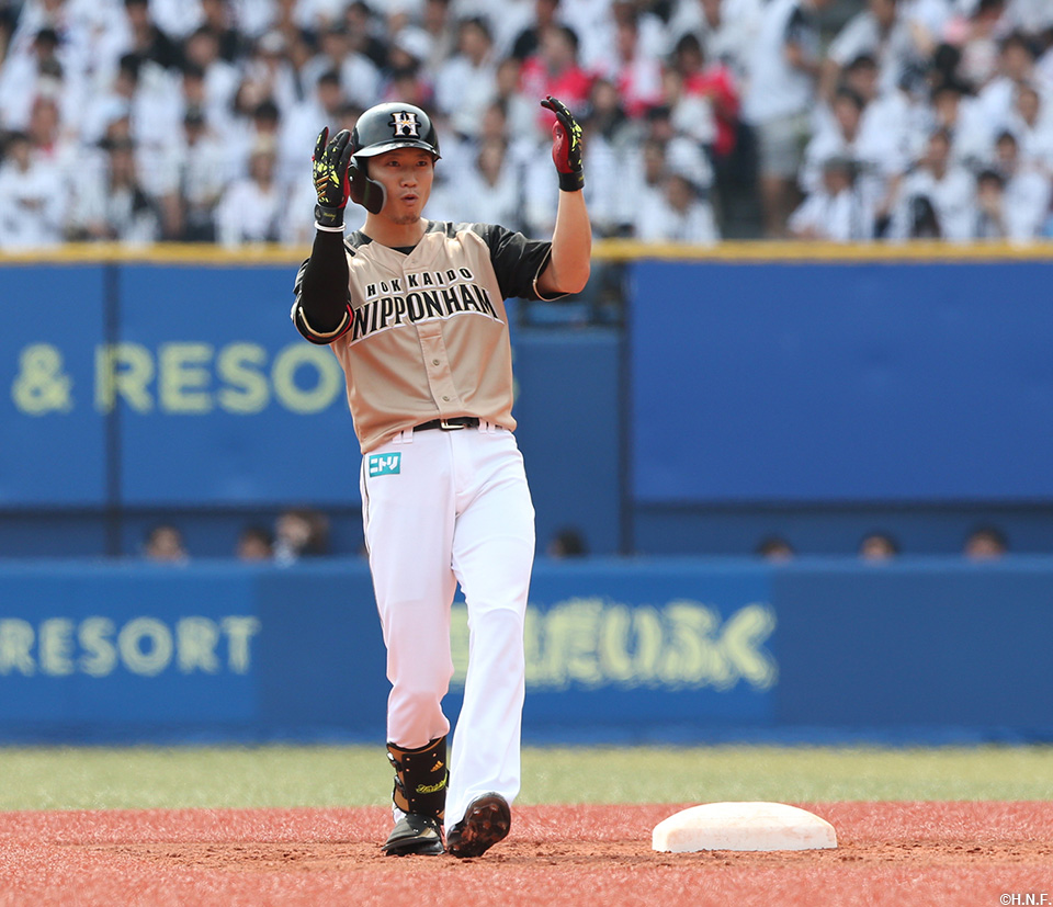 5番 田中賢介 中安 高めのストレートをセンターへ打ってヒット 1塁 |
