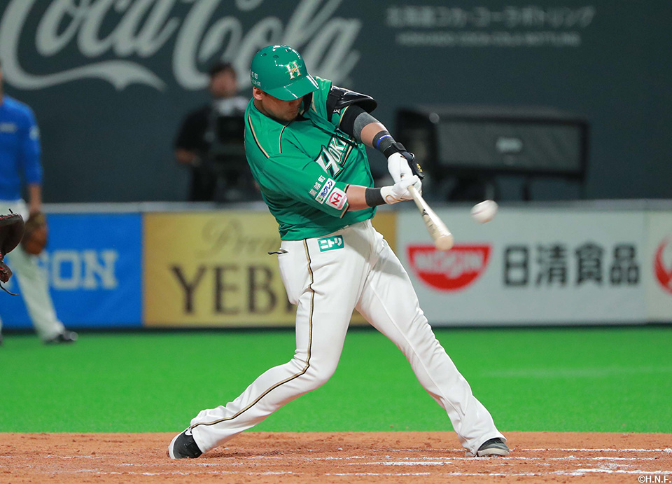 投手 上沢 6番 中村 中安 高めのカーブをセンターへ打ってヒット 1塁 |