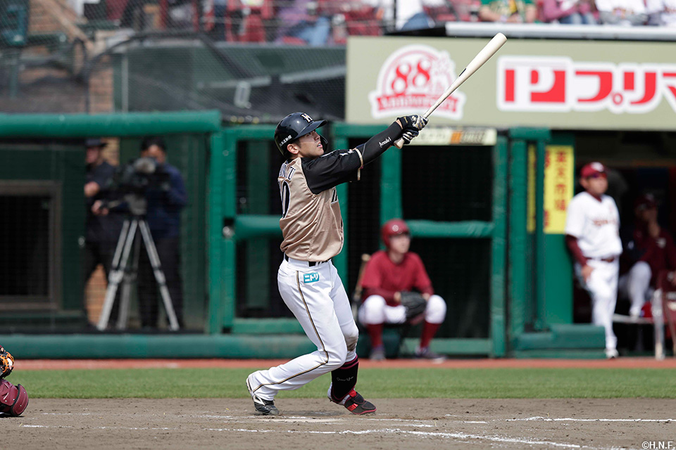 8番 清水 中犠飛 ランナー2,3塁 センターへ犠牲フライ 3塁 楽0-1日 2アウト ![]() 0