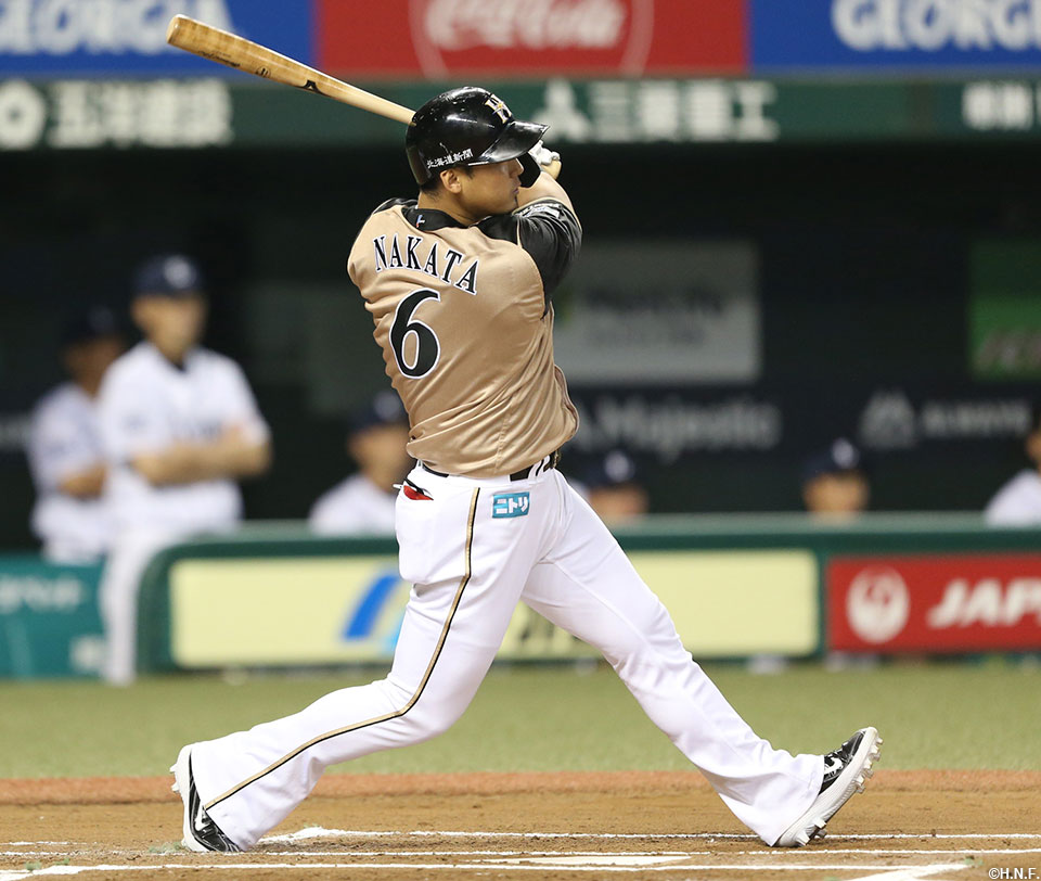 5番 中田 中安 ランナー1,3塁 低めのストレートをセンターへタイムリーヒット! 1,2塁 西7-4日 ![]() 7