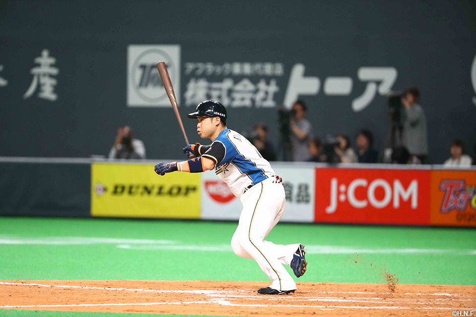 9番 田中賢介 右本 ランナー1塁 カウント1-0からライトスタンドへ逆転2ランホームラン! 日5-4ロ ![]() 5